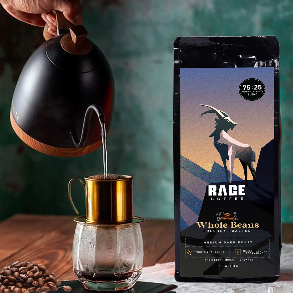 Crafted for true coffee lovers, these freshly roasted whole beans deliver a rich, smooth, and aromatic experience in every cup. Made from a carefully balanced blend of 75% Arabica and 25% Robusta beans, sourced from high-altitude farms, this blend offers depth, character, and consistency you can taste.